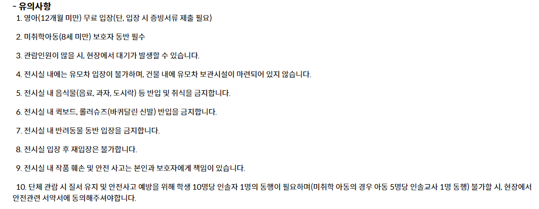 | 운영 시간 | 10:00 ~ 17:00 (16:00 입장 마감) |