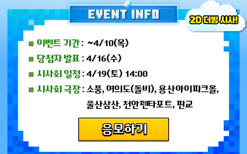 자세한 이벤트 기간, 시사회 극장 및 당첨자 발표날짜는 아래 자세히 알려드리겠습니다.