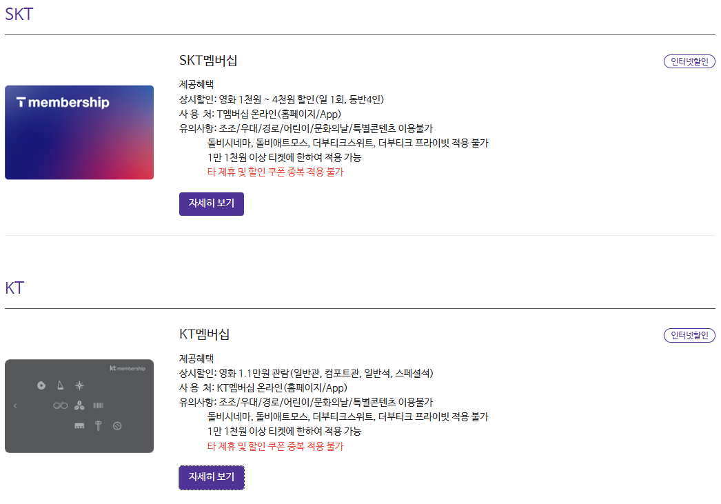 본인 이용하고 있는 통신사 확인 하신 후 영화할인예매 혜택 꼭 받으시기 바랍니다.