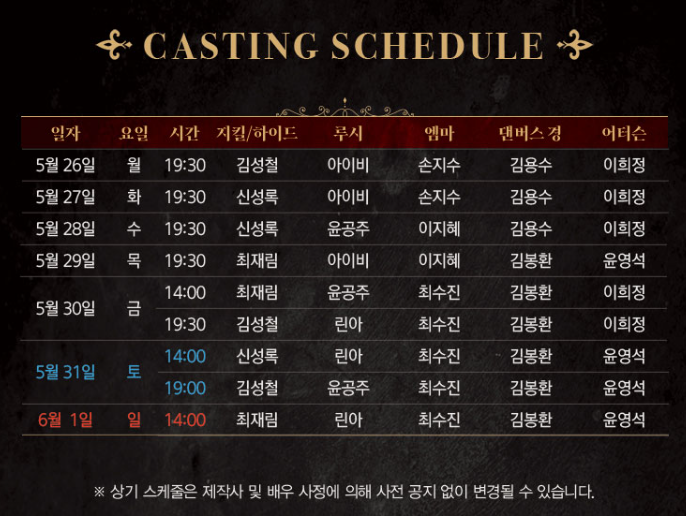 | 공연 기간 | 2025년 5월 26일(월) ~ 2025년 6월 1일(일) |