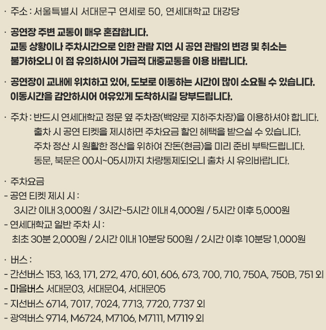 | 공연 날짜 | 2024년 8월 23일 (금) 오후 7시30분 2024년 8월 24일 (토) 오후 1시 오후 6시 |