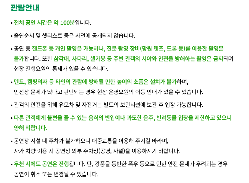 공연가수 라인업, 입장안내 및 주차정보 등을 아래 자세히 알려드리겠습니다.