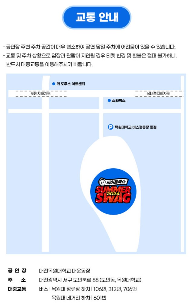 | 장소 | 대전목원대학교 대운동장 (대전광역시 서구 도안북로 88) |
