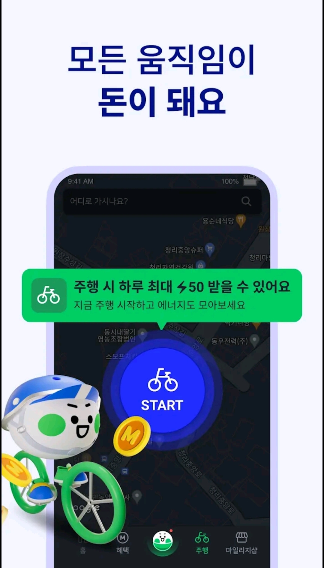 매일 걷기+라이딩까지 두 배 적립! 움직이면 돈 버는앱, 만보기로 현금처럼 사용 가능한 마일리지 적립하고 기프티콘 교환하세요.