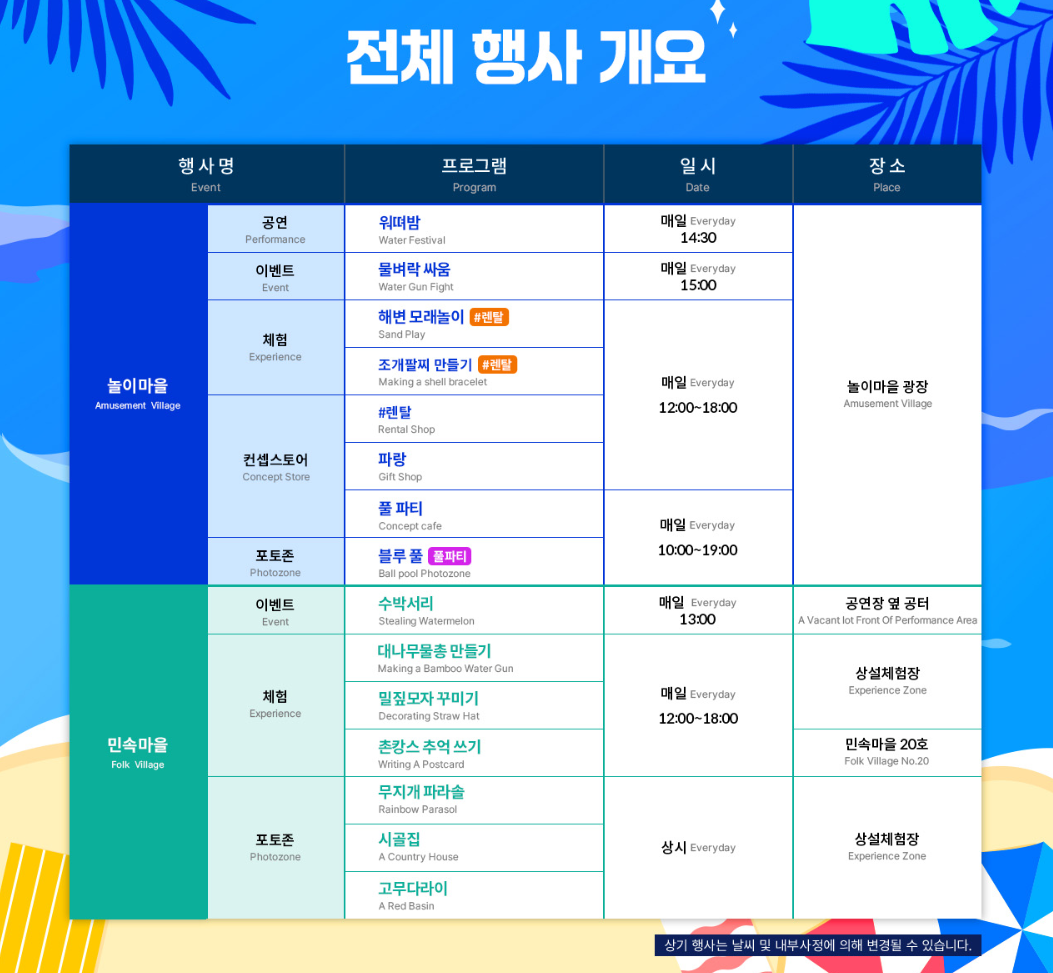 아래 한국민속촌 여름축제 전체 행사 프로그램 및 시간 확인하시고