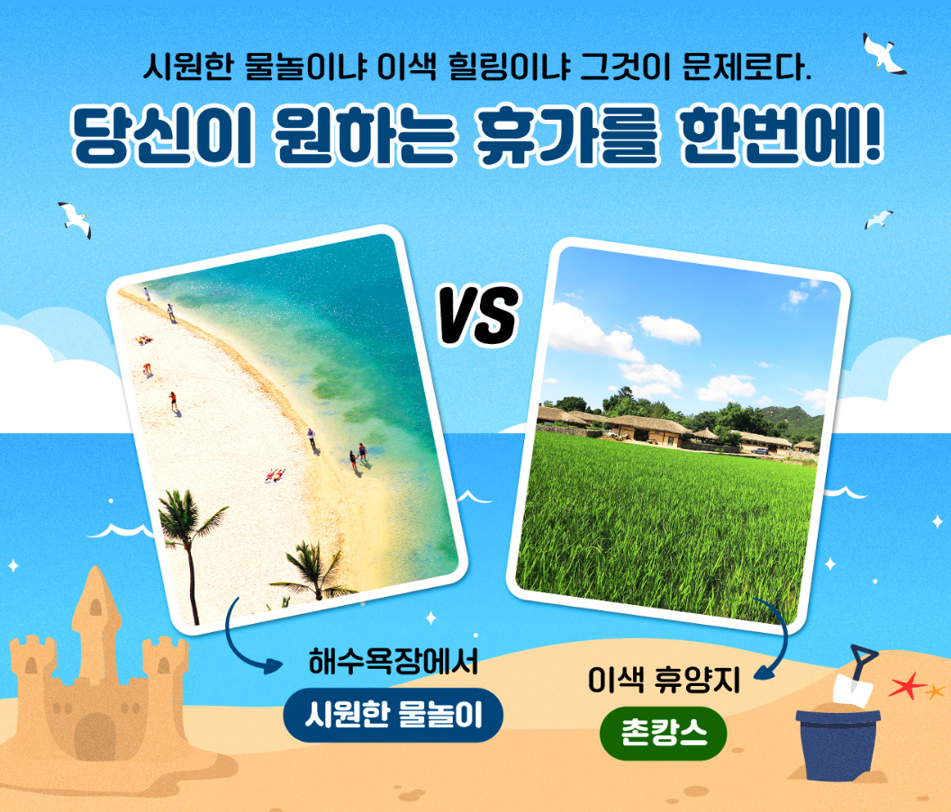 우리나라 전통공간인 한국민속촌이 여름 해변가로 변해 피서를 즐길수 있는 공간으로 바뀌고,