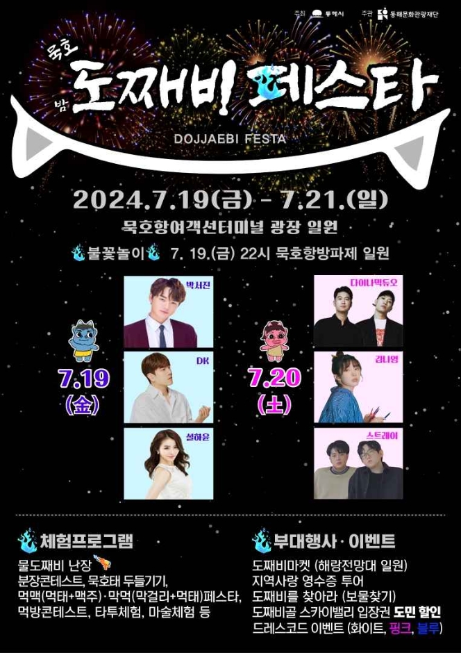 먹태와 막걸리 등 지역의 고유 먹거리를 활용한 먹맥(먹태+맥주), 막먹(막걸리+먹태) 페스타, 먹방 콘테스트, 타투 및 마술체험, 물도째비 난장 등 다채로운 체험 프로그램을 비롯해 도째비마켓, 지역사랑 영수증 투어, 공연행사 등 부대행사가 마련되어 있습니다. 묵호항 수변공원에서 해랑전망대까지 로컬크리에이터 플리마켓인 도째비마켓과 야시장을 연계 운영, 축제의 시너지를 높이고 또다른 볼거리도 선보일 예정이라고 합니다.
